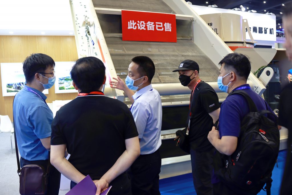? ? 南昌礦機(jī)展位位于室內(nèi)B區(qū)T19號(hào),一臺(tái)HFS液壓高頻篩和一臺(tái)VSD雙腔立軸破碎機(jī)高高佇立在展場(chǎng)里,向觀眾展示著企業(yè)的科研實(shí)力和創(chuàng)新精神,先進(jìn)的設(shè)備吸引了無(wú)數(shù)參展嘉賓到場(chǎng)咨詢。