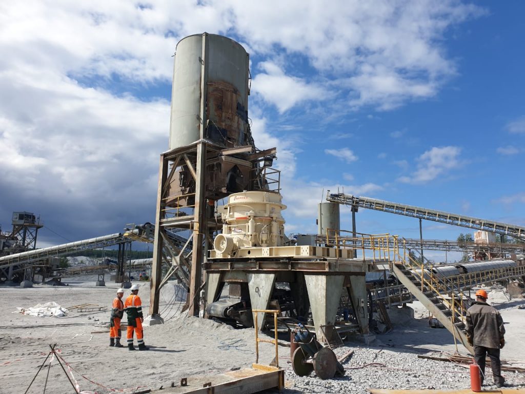 ? ? 此前,南昌礦機(jī)的一臺 JC顎式破碎機(jī)、兩臺MC多缸圓錐破碎機(jī)應(yīng)用于拉法基集團(tuán)俄羅斯項(xiàng)目。自設(shè)備抵達(dá)現(xiàn)場開始,南昌礦機(jī)當(dāng)?shù)氐姆?wù)工程師為客戶提供了全方位的服務(wù),培訓(xùn)、現(xiàn)場指導(dǎo)、幫助客戶進(jìn)行技術(shù)改造……這一系列工作大大縮短了設(shè)備的安裝調(diào)試時(shí)間,設(shè)備一次啟動成功后便正式投入生產(chǎn)。運(yùn)行至今,設(shè)備運(yùn)轉(zhuǎn)良好,客戶對南昌礦機(jī)的設(shè)備與服務(wù)給予了高度評價(jià)。