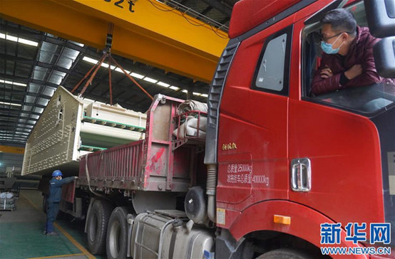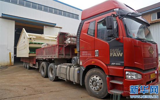 2月27日,裝載著出口篩分機設(shè)備的貨車駛出工廠。