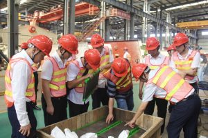 當(dāng)天,在龔友良總裁等人的陪同下,水電八局砂石公司一行進(jìn)入南昌礦機(jī)生產(chǎn)車間進(jìn)行參觀,近距離了解車間的生產(chǎn)環(huán)境,南昌礦機(jī)先進(jìn)的自動(dòng)化生產(chǎn)設(shè)備、精湛的生產(chǎn)工藝以及大型產(chǎn)品吸引水電八局一行駐足觀看。參觀時(shí),到訪嘉賓們對(duì)南昌礦機(jī)的設(shè)備表現(xiàn)出濃厚的興趣,紛紛提問,以便能更加了解產(chǎn)品情況。通過現(xiàn)場(chǎng)參觀和考察,水電八局砂石公司技術(shù)團(tuán)隊(duì)對(duì)南昌礦機(jī)有了更加深入的了解,并對(duì)企業(yè)各方面實(shí)力表示了充分的肯定。