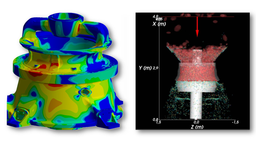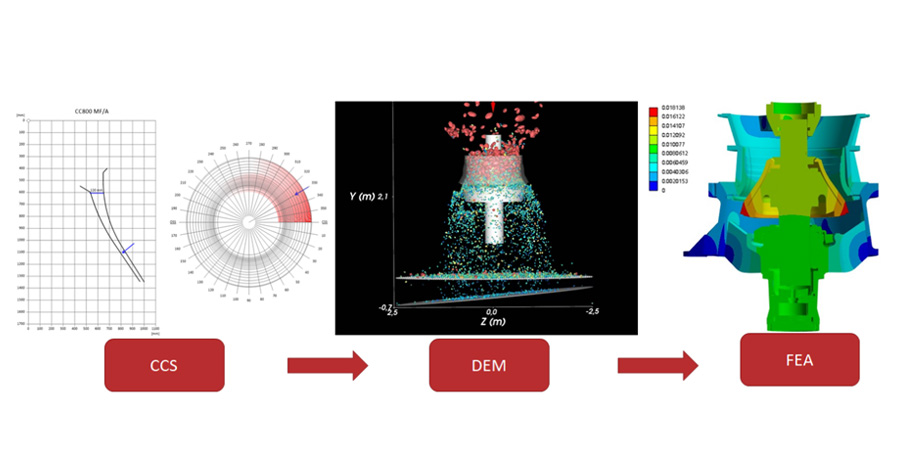 CC系列的單缸液壓圓錐破碎機FEA和DEM仿真